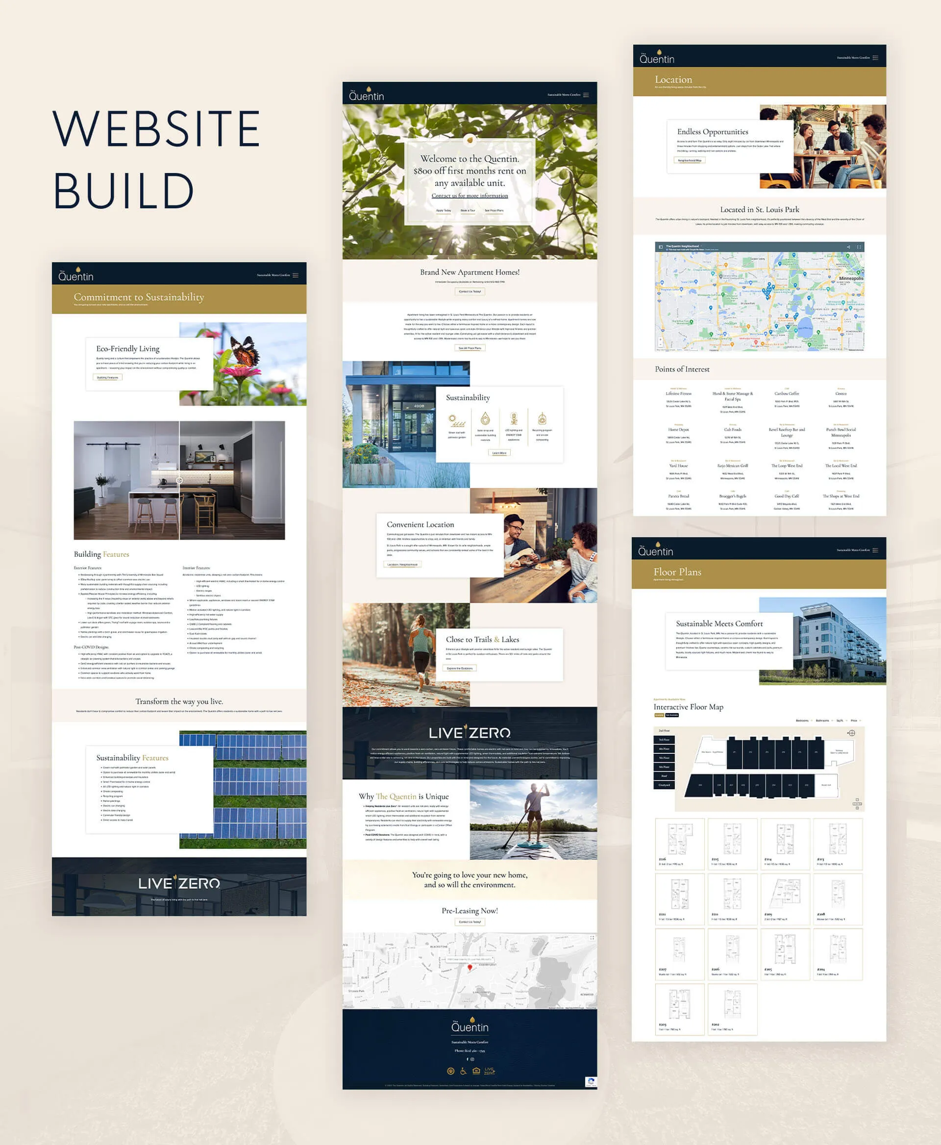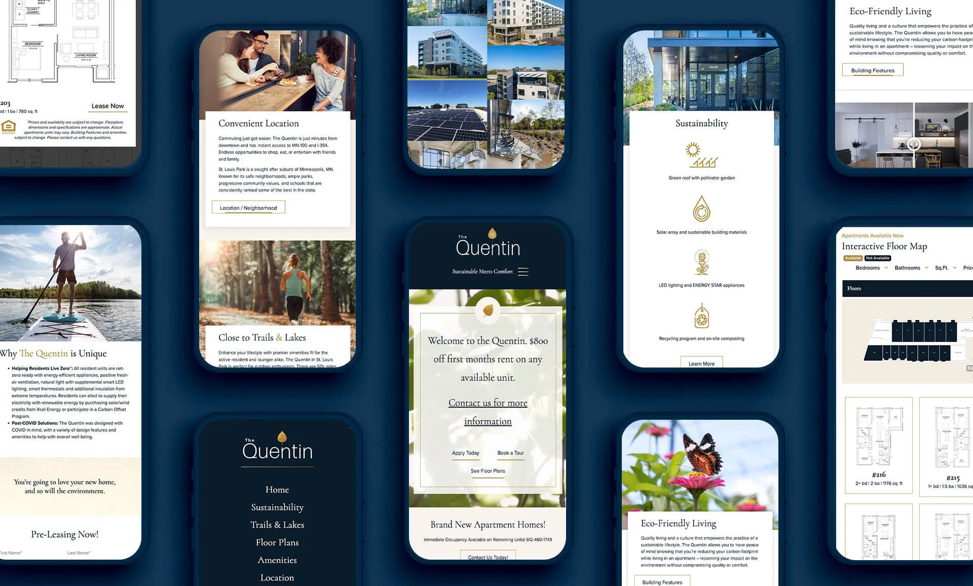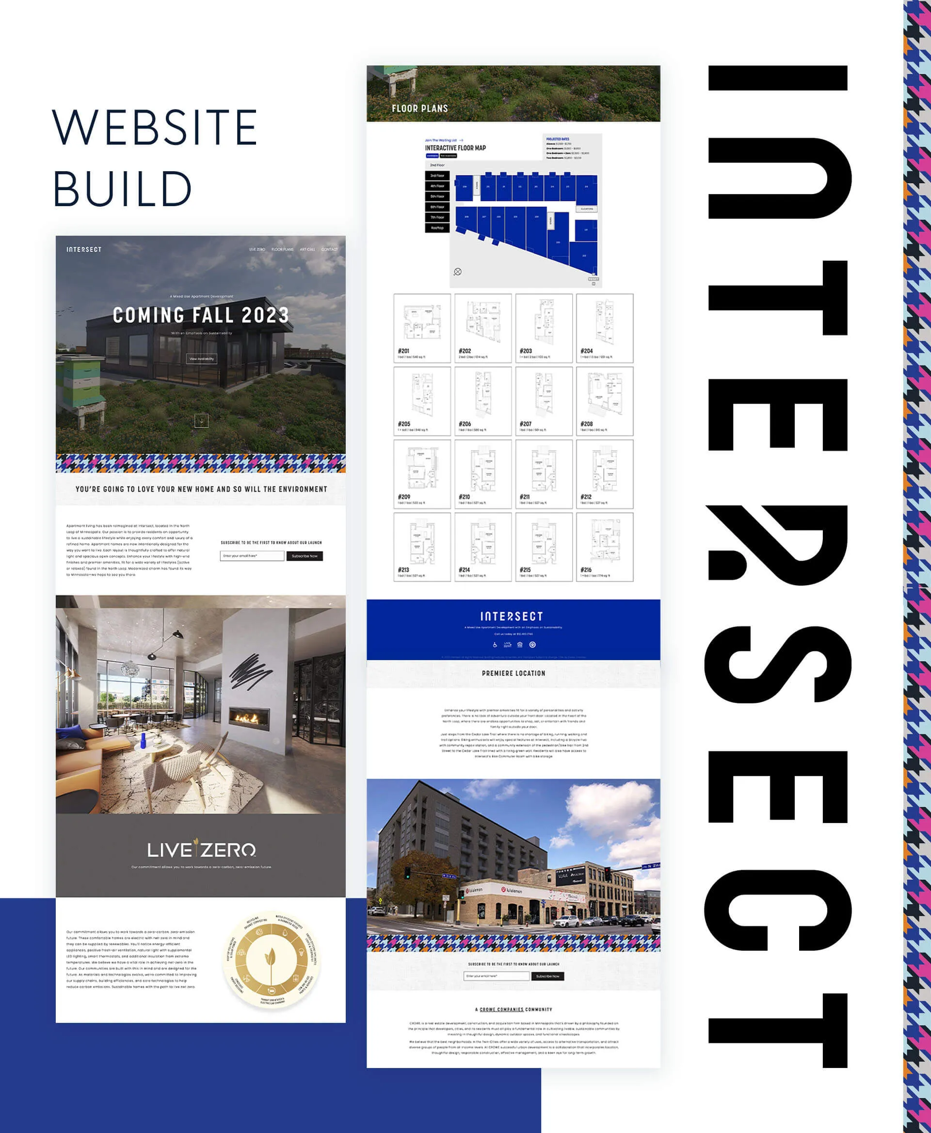 Our team has partnered with Crowe Companies on multiple projects to extend their branding into a series of websites that coincide with each properties’ unique design flair. Our developer and designers joined forces to create interactive pages depicting each complex’s floor plans. The user friendly and clean, simple design of these websites parallel well with the brands’ focuses on environmentally conscious, sustainable living.