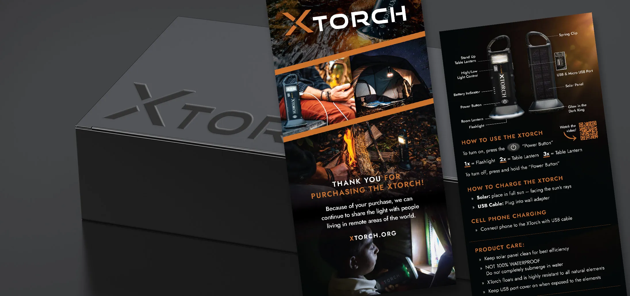 XTorch is a durable, multi-use flashlight equipped with a lantern, solar panel and USB port all in one. A product with a mission, the XTorch also partners with various initiatives to donate XTorchs to people in third world countries without reliable light and power.